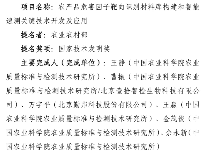 中国农学会提名2025年度国家科学技术奖项目(1个)