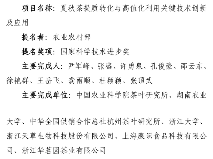中华全国供销合作总社提名2025年度国家科学技术奖项目(1个)
