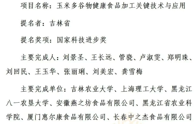 吉林省提名2025年度国家科学技术奖项目(1个)