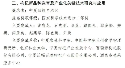 宁夏回族自治区提名2025年度国家科学技术奖项目(1个)